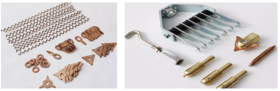 工作原理:利用低電壓、高強度的電流流過兩塊鋼板(或鋼板與介子)時產生的高電阻熱熔化接觸部分的金屬,用焊槍電極擠壓力把它們熔合焊接在一起,再用拉拔工具如慣性錘,實現修復板件缺陷的目的。附圖工具:圖1介子墊圈 圖2:碳棒 銅頭