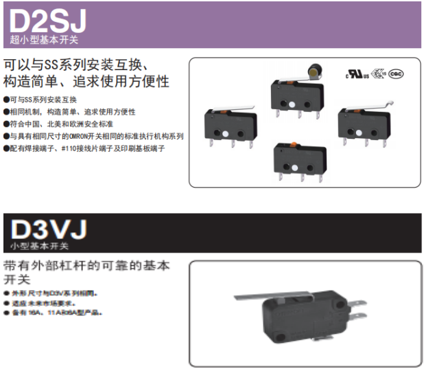 那么在回執(zhí)器中,現(xiàn)市場常用的歐姆龍微動系列就是D3VJ-15-1C25 和 D2SJ-5GL2-P,如需更多的產(chǎn)品選型知識,可聯(lián)系歐姆龍一級代理商廣州鼎悅電子科技有限公司,我們將為您提供技術(shù)支持,并可幫助您選型跟提供樣品及更多的選擇哦!
