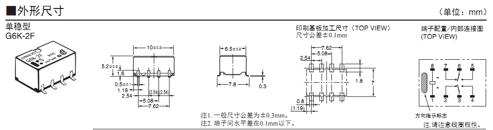 高5.2mm×寬6.5mm×長10mm的超小型,對應高密度封裝(G6K(U)-2F(-Y)型)。