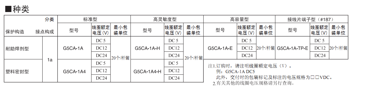 G5CA-1A-E功率繼電器