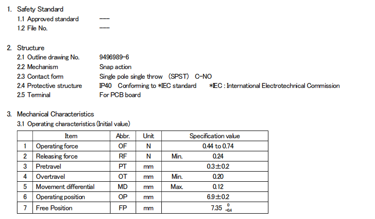 D2FC-F-7N (20M) 克力為:60+/-15G,壽命為2000萬(wàn)次;