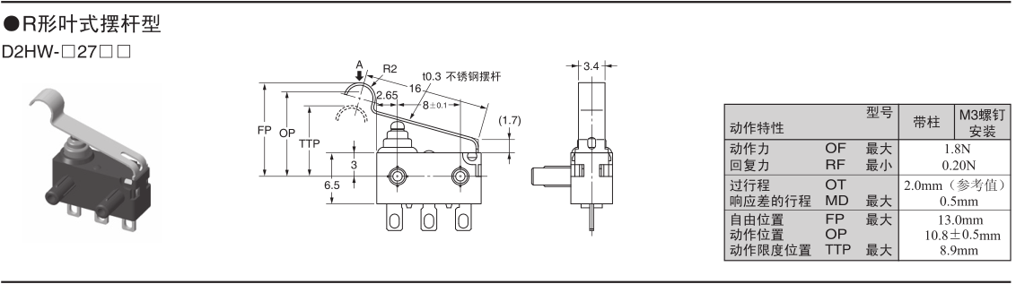 歐姆龍微動開關,D2HW-C271H,歐姆龍微動開關D2HW