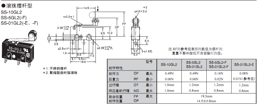 歐姆龍微動開關,SS-5GL2-F,歐姆龍微動開關SS