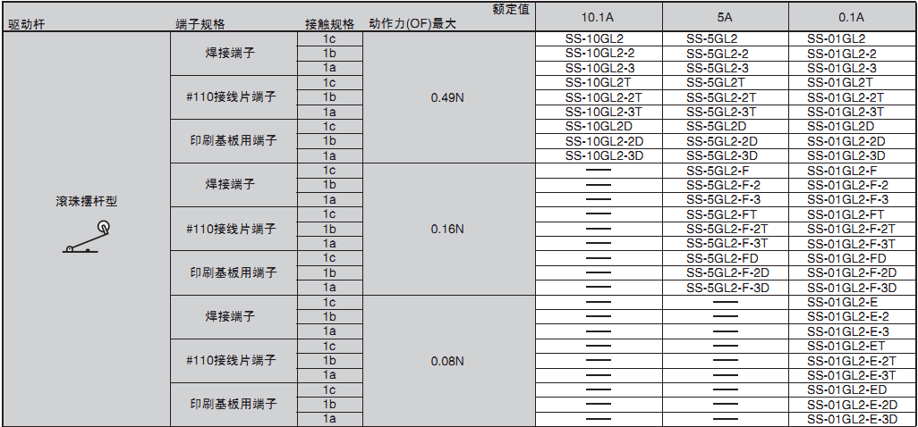 ? 備有0.1A~10.1A型的各個品種,產品規格齊全,是歐姆龍暢銷的開關。