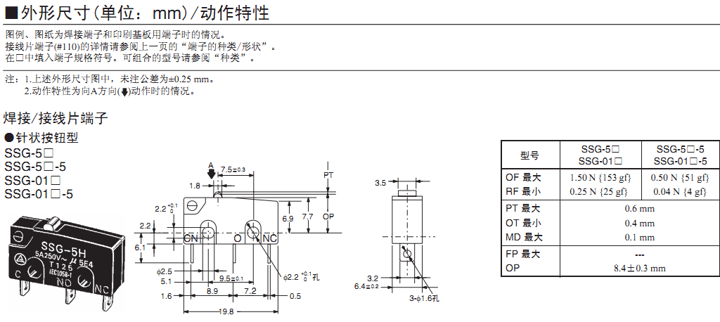 歐姆龍微動開關,SSG-5H,歐姆龍微動開關SSG