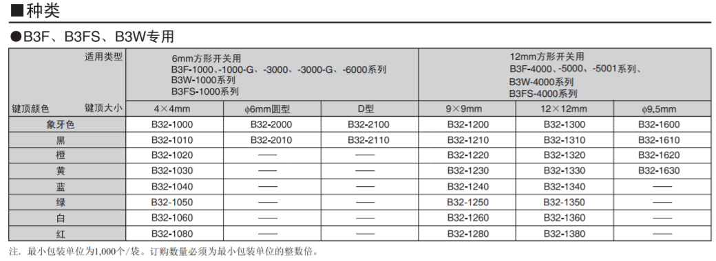 B3F、B3FS、B3W的凸型柱塞類型專用鍵頂