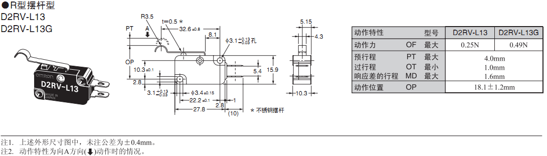 歐姆龍微動(dòng)開關(guān), D2RV-L13,歐姆龍微動(dòng)開關(guān)D2RV