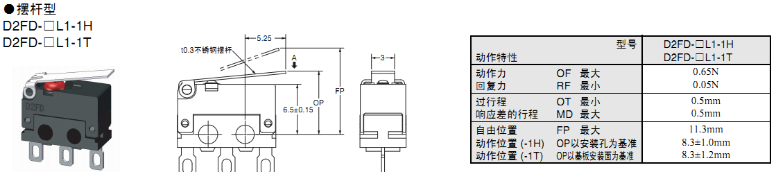 歐姆龍微動開關, D2FD-01L1-1H,歐姆龍微動開關D2FD