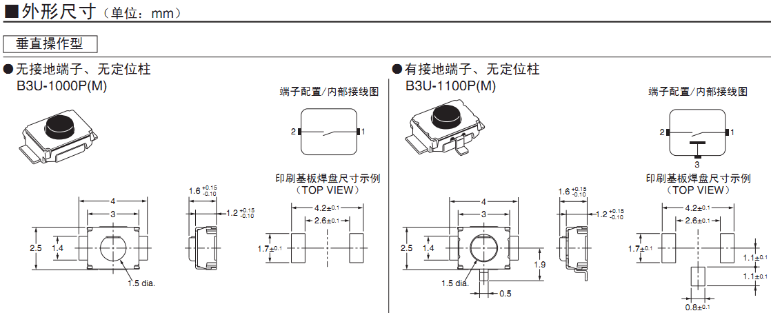歐姆龍輕觸開關, B3U-1000P,歐姆龍輕觸開關B3U