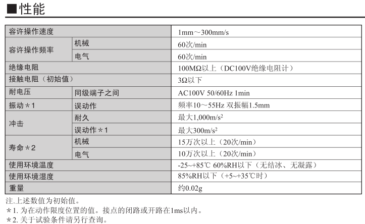 • 特定的接點構造,實現高動作位置精度及高接觸可靠性。