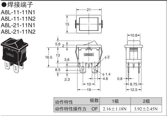 歐姆龍船型開關,A8L-11-11N1,歐姆龍船型開關A8L