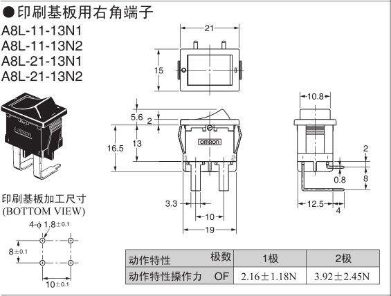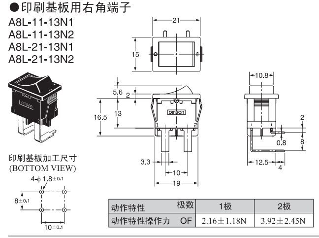 歐姆龍船型開關,A8L-21-13N1,歐姆龍船型開關A8L