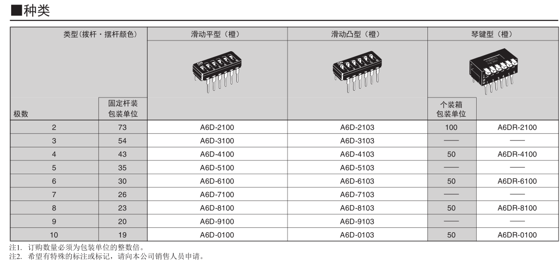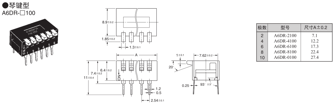 • A6DR-2100滑動琴鍵型DIP開關