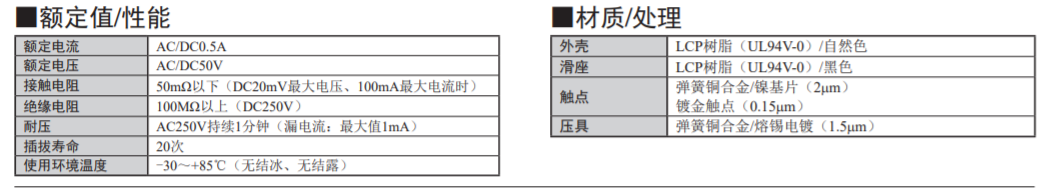接點構(gòu)造備有雙面觸點型和上觸點型兩種。 (上接點型只有0.5mm間距)