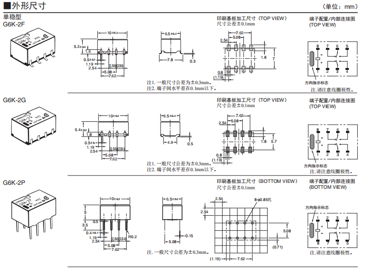 •  高5.2mm×寬6.5mm×長10mm的超小型,對應高密度封裝(G6K(U)-2F(-Y)型)