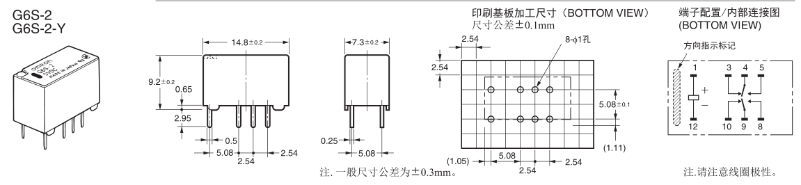 歐姆龍信號繼電器,G6S-2-Y DC5V,2A小型信號繼電器