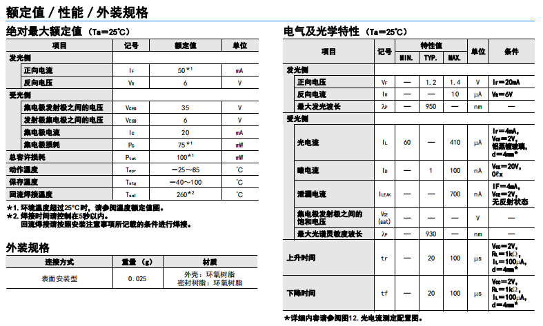 小型表面安裝型反射型傳感器