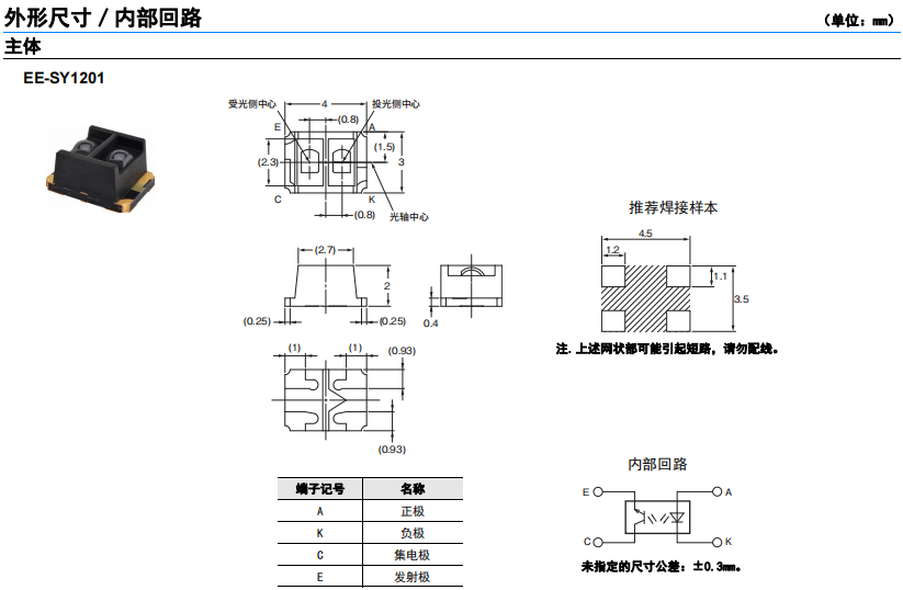 EE-SY1201 微型光電傳感器(反射型)